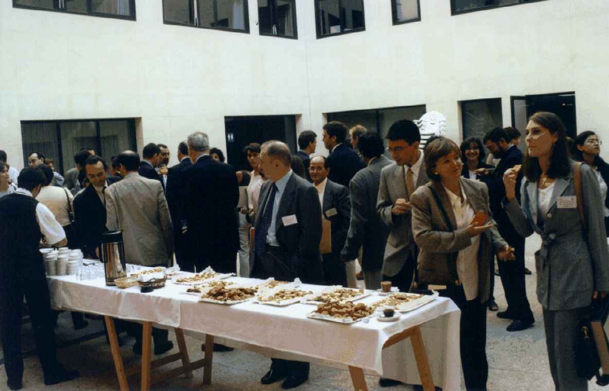 Entre las diversas sesiones se realizaron unos breves descansos para tomar un café en el patio del Colegio.